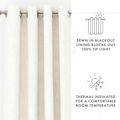 Add a touch of style to your bedroom or living room with our extra-wide thermal insulated blackout curtains. These curtains are made from a soft-to-touch linen blend weave that will add subtle texture to any room. They’re also designed to block out light and noise perfect for nap time, movie time, or just relaxing! The thermal insulated feature keeps your room at that perfect temperature year-round. Choose from ivory, light gray, or white-these stylish neutrals will be the perfect addition to any room. Two extra wide panels are included!