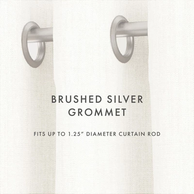 - Brushed silver grommet fits up to 1.25” diameter curtain rod