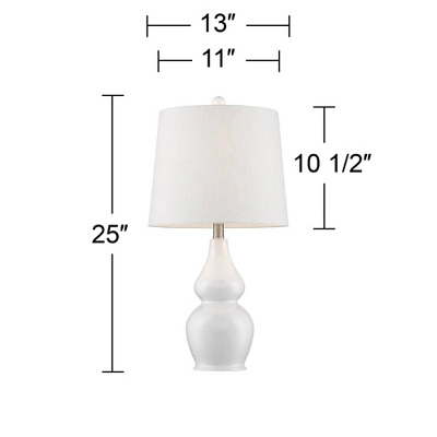 This Jane set of two double gourd table lamps from 360 Lighting is designed with ceramic to boast sleek charm and detail. The white finish reinforces the clean and distinct style of each lamp. With a ball finial atop each lamp, this set is decorated from top to bottom to ensure elegant and decorative style.