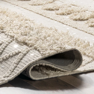 The detail! Featuring a blend of high-low shaggy pile, hand-tufted motifs, and decorative sequins, the Chandy Rug has texture for days. A long-standing favorite of the designer, this piece was hand-picked by Arvin Olano for his collection with Rugs USA. Its eclectic design is sure to add some bohemian flair to your space, while also keeping things low-key thanks to its neutral hue. Made of 100% wool, this rug is super soft underfoot, too.