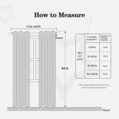 - Faux-silk panel pair (Panel dimensions: 38”x84” or 38″ x 63″)