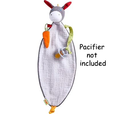 Out of the meadow and into baby’s bedroom: Lu the Donkey is a companion and a cuddly toy combined, with fascinating features to touch, listen to and otherwise explore. When rolled up, the cuddly is transformed into a cute playmate. Cleaning Instructions: HABA’s plush baby toys are machine washable on cold/delicate. Please do not tumble dry.