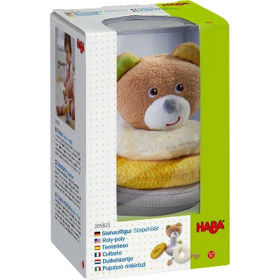 - The soft head and two plush stacking rings can be removed from the center of the post adding a new element to HABA’s line of roly poly chiming toys.