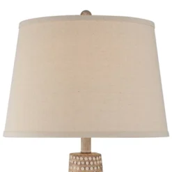 Round Fabric Ottoman With Faux Leather Trim – Cream/Gray Stripes – Hearth & Hand™ With Magnolia