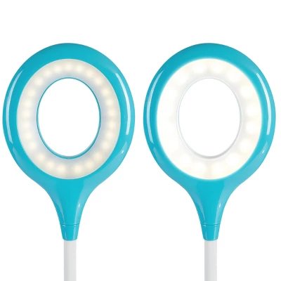 - Bright Table Lamp: This 5-watt LED lamp desk light uses 25 individual 4000 K neutral white LEDs, rated for 20,000 hours of use and arranged in a 5.5-inch ring with frosted plastic to diffuse the light