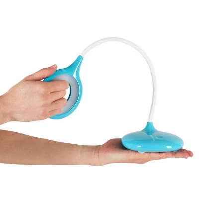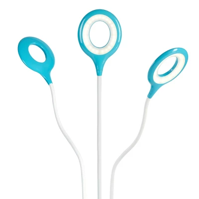 This small, 5-watt LED desk lamp is a perfect lamp for the office, dorm room, bedroom, or any place where you need an adjustable brightness light. It uses 25 individual 4000 K neutral white LEDs, rated for 20,000 hours of use and arranged in a 5.5-inch ring, with frosted plastic to diffuse the light. This flicker-free bright table lamp features a stable 5 x 5.5-inch base with a touch control button that allows you to turn the light on or off with a mere touch. Holding the button continuously adjusts the brightness level up and down to a maximum of 400 lumens of brightness, while built-in memory remembers the last setting used when the light was powered off. The 17.7-inch flexible silicone neck allows you to position the light angle for the desired level and focus of illumination. The light is powered using a USB power source (not included) and features a 1200mAh rechargeable battery, which can provide up to 4 hours of operation on a 2-3 hour charge. A 59-inch USB Type-A to Micro Type-B cable is included.