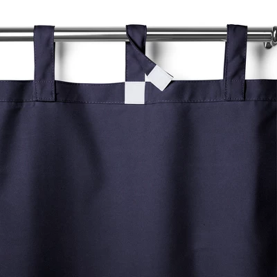 The Matine solid indoor/outdoor curtains are the perfect solution for any outdoor or patio space. These versatile window panels are water repellant, mold, mildew, and fade resistant, and offer UPF 50+ sun and UV protection. Tab top header features hook and loop fastening for effortless hanging in any space. Curtains are 52 inches wide by 84, 95 or 108 inches long. 4″ tab top header length is not included in provided measurements.100% polyester. Sold as a single panel. Easy care, machine washable.