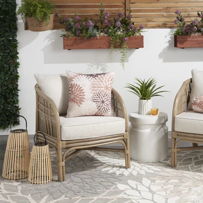 Toss tropical style onto your couch or patio furniture with these outdoor throw pillows from the Aloha Collection. The oversized floral pattern is printed onto smooth polyester fabric in bright and neutral color options that complement a variety of styles. Choose from soft and supportive bolster pillows or reversible throw pillows with a modern chevron pattern on the back. Polyester insert included.