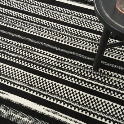 For the modern maximalist, this abstract striped rug from the Grafix Collection adds bold pattern to your space. The combination of solid stripes, checkered blocks, and lightly distressed lines creates visual interest when added to your kitchen, entryway, bedroom, or living room décor. Machine-made from durable polypropylene yarns that are easy to maintain – great for busy households with pets, young kids, and frequent guests.