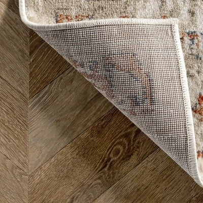 A beautiful earthy color palette and distressed design come together perfectly on this floor covering. Machine-made from silky soft synthetic material, this rug is perfect for you if spills and regular foot traffic are at the top of your mind A rug pad is recommended to prevent slipping and to keep the rug lying flat in one place.