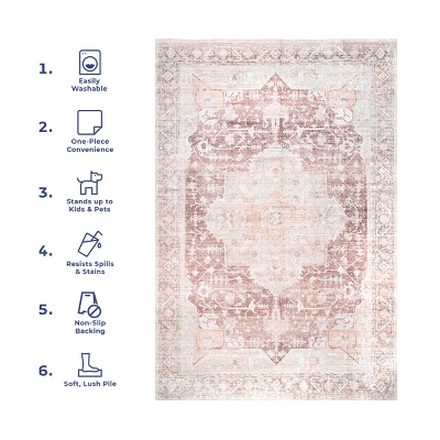 - New and innovative one-piece machine washable rug with the backing layer attached. This conveniently eliminates the hassle of any additional setup, simply lay flat in the desired space upon arrival and after each wash