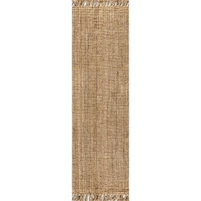 Natural jute fiber and a chunky texture make this handwoven rug a great addition to your home. The solid natural jute color works almost anywhere, in both modern or traditional rooms. Fringed ends add even more texture. This rug is reversible for longer wear.