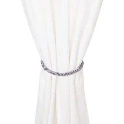 Juvale 2 Pairs Light Grey Rope Curtain Tiebacks With Hooks, Holdbacks For Window Drapes (26 In)