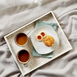Juvale 2-Pack Rustic Wood Coffee Table Serving Tray With Handles For Ottoman, White Floral