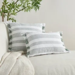20″x20″ Oversize Ribbed Square Throw Pillow With Pom-Poms Black/Ivory – Mina Victory