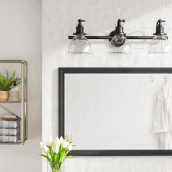 3-Light Industrial Glass Chandelier Matte Black – Threshold™
