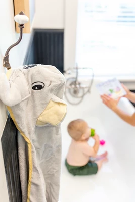 - Complete set: 5-piece set includes storybook, elephant hooded towel, and 3 cute animal squirt toys for bath-time fun